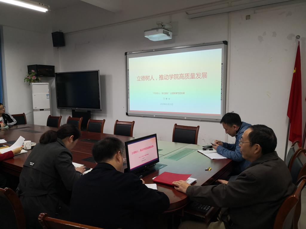 按照校党委统一安排,2019年11月15日,财政jinnianhui今年会党委召开了“不忘初心、牢记使命”主题教育专题党课学习活动。学院班子全体成员、各支部书记、综合办和学团办全体教职员工参加了学习,学习活动由党委书记杨萍主持。