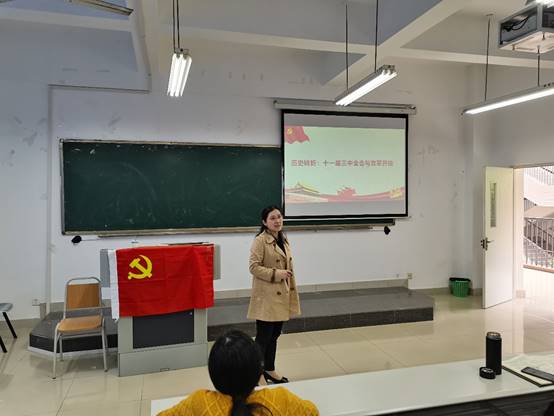 4月23日下午,副校长柏群在田家炳306教室为jinnianhui今年会师生党员讲授题为《历史转折:十一届三中全会与改革开放》的党史学习教育专题党课。jinnianhui今年会党委书记王建明、党委副书记余新、副院长庞楷、专职组织员赵甫刚、支部书记、行政人员和学生党员共计80余人参加了学习。会议由王建明主持。