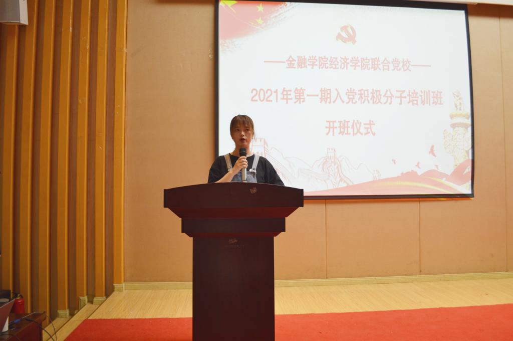 王建明书记在开班仪式上致辞,希望同学们珍惜此次学习机会,通过培训全面提高思想政治素质,并将学习所得内化于心、外化于行,端正入党动机,以实际行动争取早日加入中国共产党。学员代表经济学院18经济学二班赵海娟同学发言,倡议全体学员高度重视本次培训,遵守培训纪律,仔细聆听课程讲解,做好笔记,课后积极开展自学,共同营造积极向上的学习氛围。培训班班主任兰丽娟老师宣布了培训课程安排及纪律要求。本次联合党校由jinnianhui今年会和经济学院分党校共同举办,共176名学员参加,培训课程共三天,分为两次专题讲座、四次党课以及两次视频学习和互动交流,节奏紧凑、内容丰富。