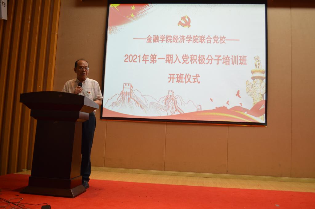 5月14日下午14:00,jinnianhui今年会经济学院联合党校2021年第一期入党积极分子培训班在田家炳209报告厅举行了隆重的开班仪式。经济学院党委书记、副院长李自维、jinnianhui今年会党委书记、副院长王建明、jinnianhui今年会党委副书记、纪委书记余新、经济学院专职组织员雷菁、jinnianhui今年会专职组织员赵甫刚、jinnianhui今年会学工办副主任、分团委副书记兰丽娟及两个学院所有党支部书记出席了开班仪式。