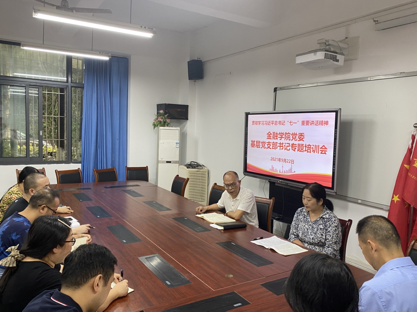 2021年9月22日上午,jinnianhui今年会党委组织召开基层党支部书记专题培训会。学院党委书记、副院长王建明,党委副书记、院长王兰,专职组织员赵甫刚和各支部书记参加了会议。王建明主持会议。