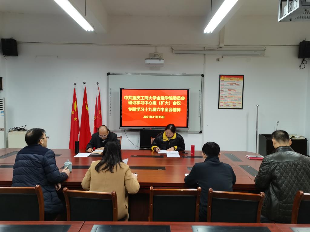 2021年11月15日上午,jinnianhui今年会党委召开理论学习中心组(扩大)会议,传达学习党的十九届六中全会精神。党委书记、副院长王建明,党委副书记、院长王兰,党委副书记、纪委书记余新,党委委员、副院长庞楷、王韧,党委委员、专职组织员赵甫刚、各支部书记和行政人员参加了会议。会议由王建明主持。