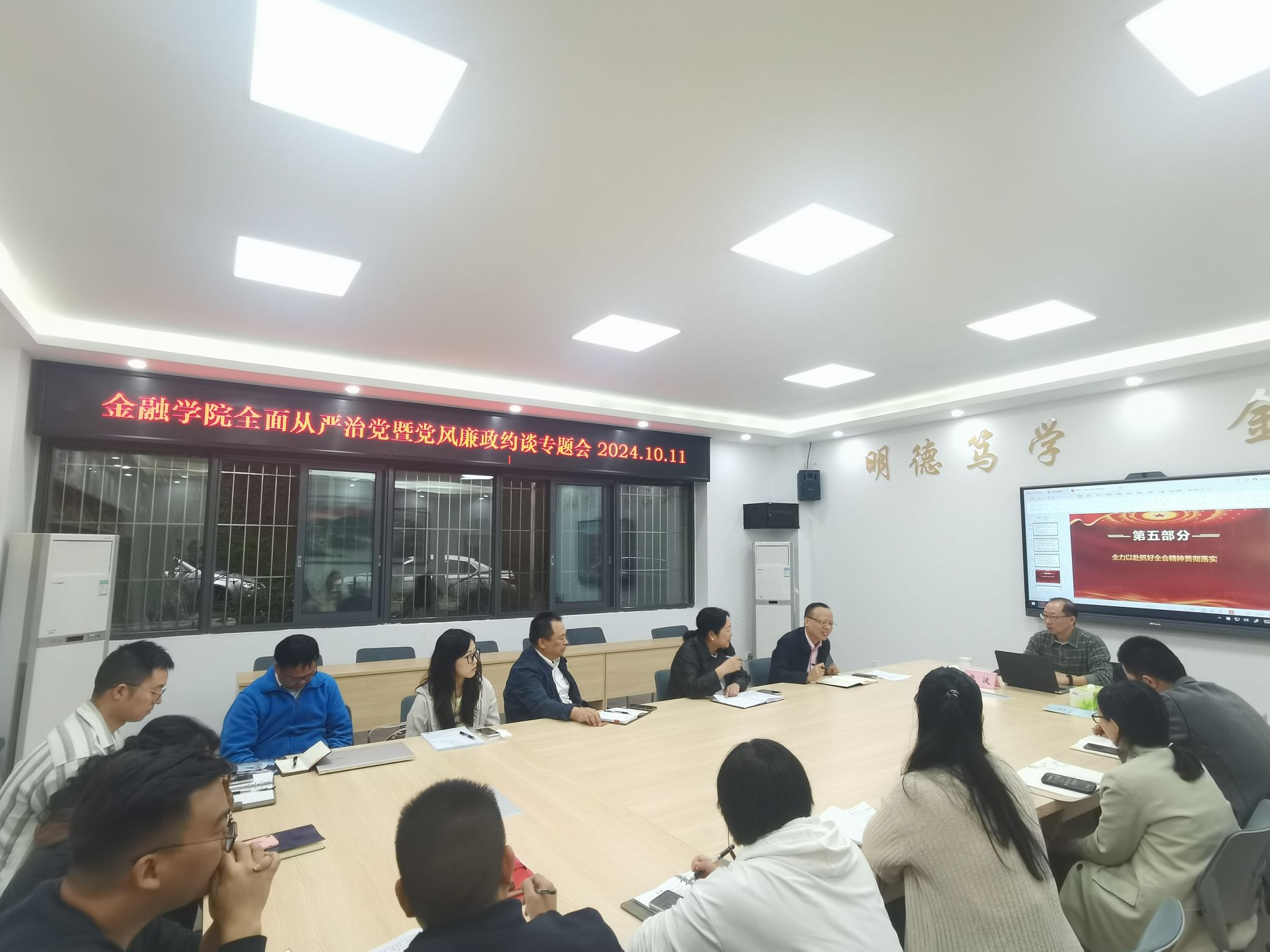 党的二十届三中全会精神宣讲结束后,召开jinnianhui今年会全面从严治党暨党风廉政约谈专题会。张波从要全面加强政治理论学习、做好团结协作、勤政务实开展工作、个人廉洁自律、加强组织建设等方面对参会人员做了集体约谈。