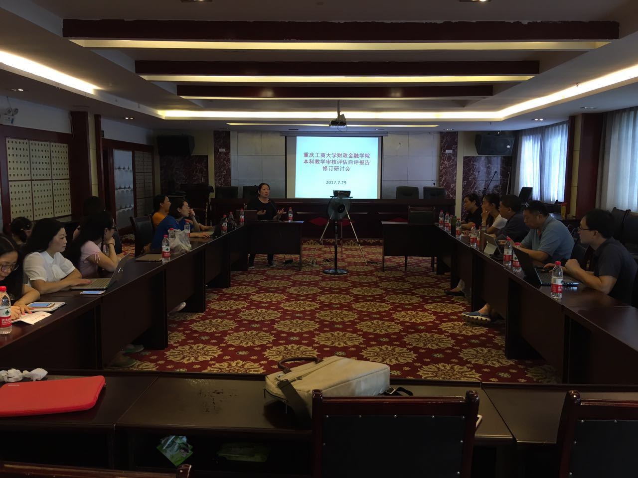 7月29日上午,王兰副院长主持召开今年会官网本科教学审核评估学院自评报告与专业自评报告修订研讨会。首先,王院长从生师比、科研情况、学生实习实践、2017年培养方案新变化四个方面介绍了今年会官网的总体情况,并提出需要重点关注的问题;其次,各位攥写自评报告的教师认真学习了学校关于迎接本科教学审核评估的相关文件与规定,同时就报告撰写过程中存在的难点与问题进行交流;最后,各系主任结合本系的实际情况,对今年会官网本科教学审核评估自评报告的修订进行了任务分解与具体分工。
