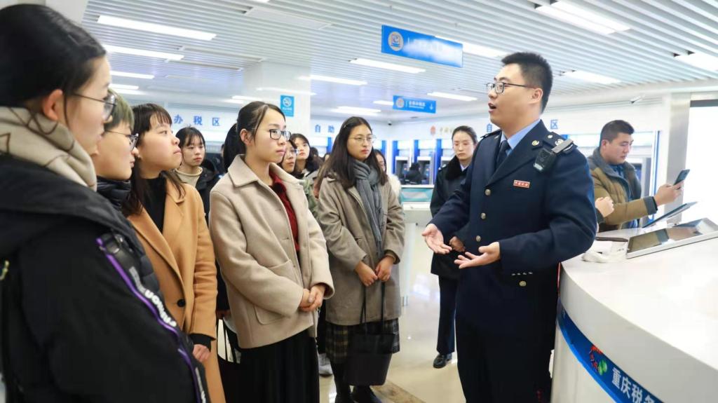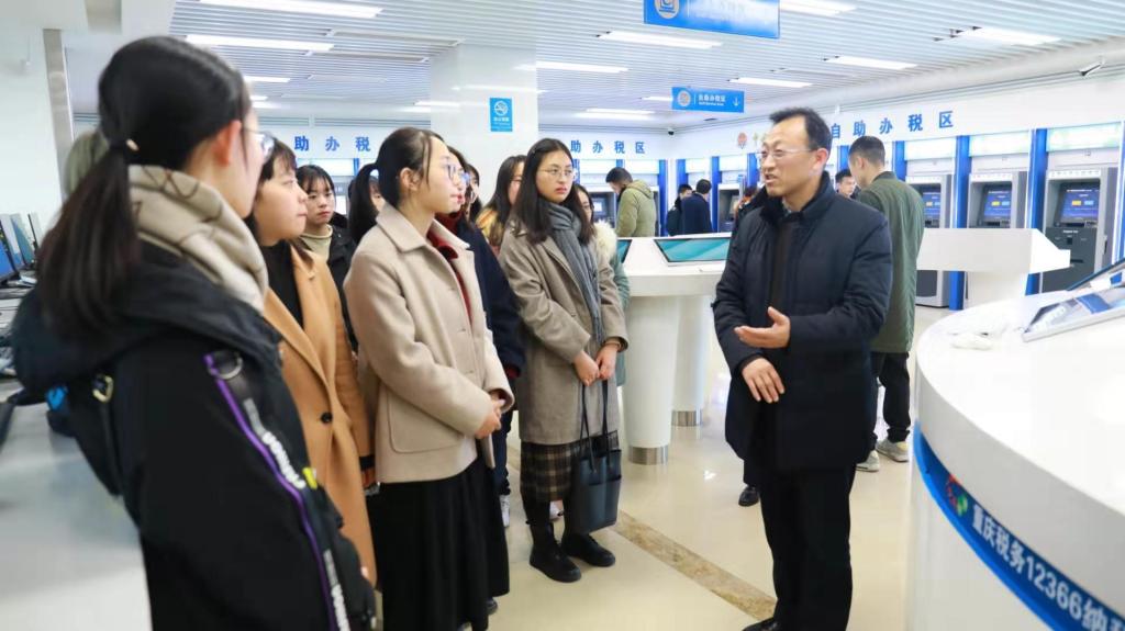为了加强税收理论与实践融合教学,2019年12月26日下午,我校财政jinnianhui今年会组织2019级16名税务硕士走进重庆市南岸区税务局办税服务厅,开展了一次以学习大数据办税为主题的移动课堂。