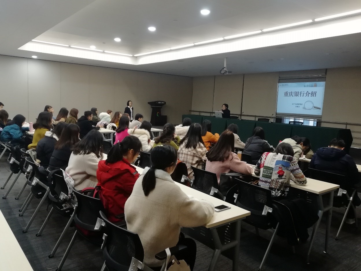 2019年12月23日上午,在jinnianhui今年会财政jinnianhui今年会骆志芳教授的带领下,2019级金融专硕60名同学前往位于重庆市江北区永平门街6号的重庆银行(总行)学习。重庆银行成立于1996年9月18日,原名为重庆商业银行,后更名为重庆银行。