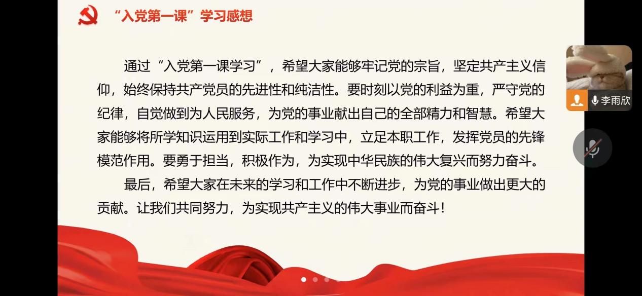本次“入党第一课”教育组织学习会的成功举办,不仅提高了大家对党员身份和责任的认识,也增强了大家的党性修养和组织纪律观念。相信在未来的学习和工作中,大家一定能够不断进步,为党的事业做出更大的贡献。让我们共同努力,为实现共产主义的伟大事业而奋斗!